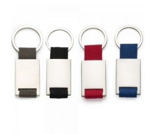 Descrição: Chaveiro de metal com detalhe colorido em nylon. Metal liso e fosco de ambos lados.